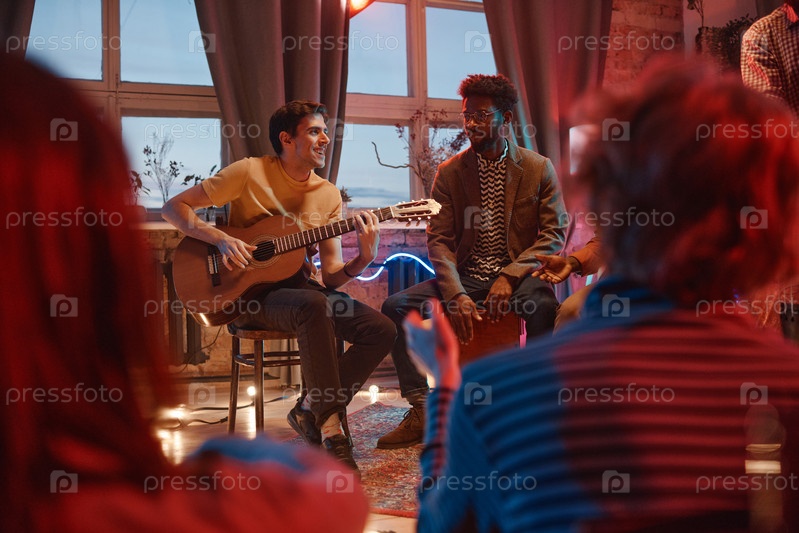 Молодые люди играют за своих друзей