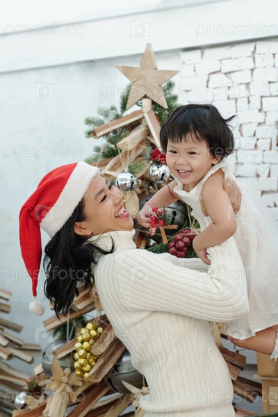 Счастливая женщина поднимает дочь