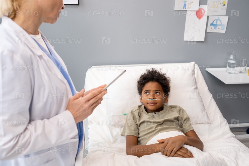 Маленький мальчик разговаривает с врачом в больнице