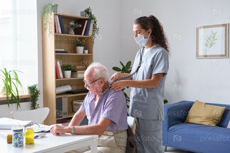 Медсестра осматривает старшего пациента