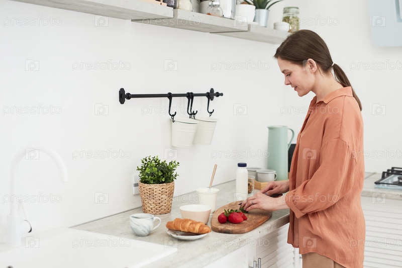 Женщина готовит себе завтрак