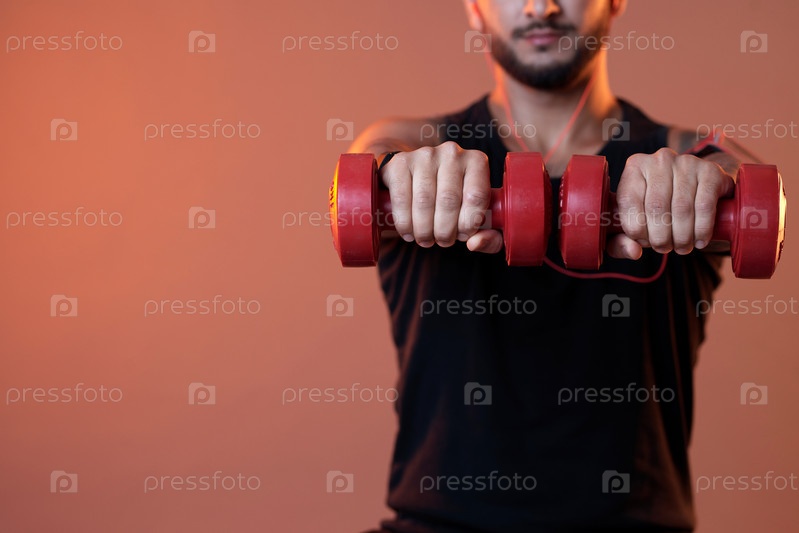 Спортсмен, держащий гантели