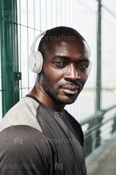 Африканский спортсмен в беспроводных наушниках