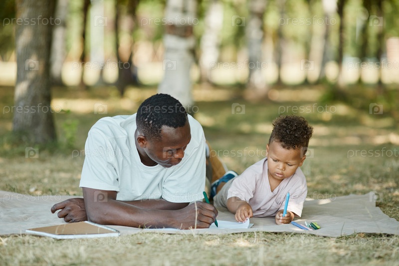Отец и сын наслаждаются пикником в парке