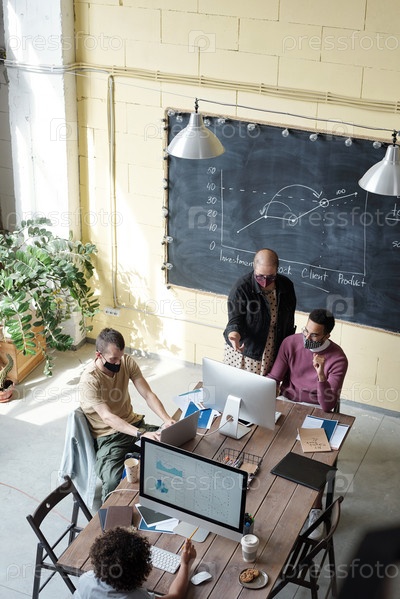 Несколько коллег смотрят на экраны компьютеров во время работы