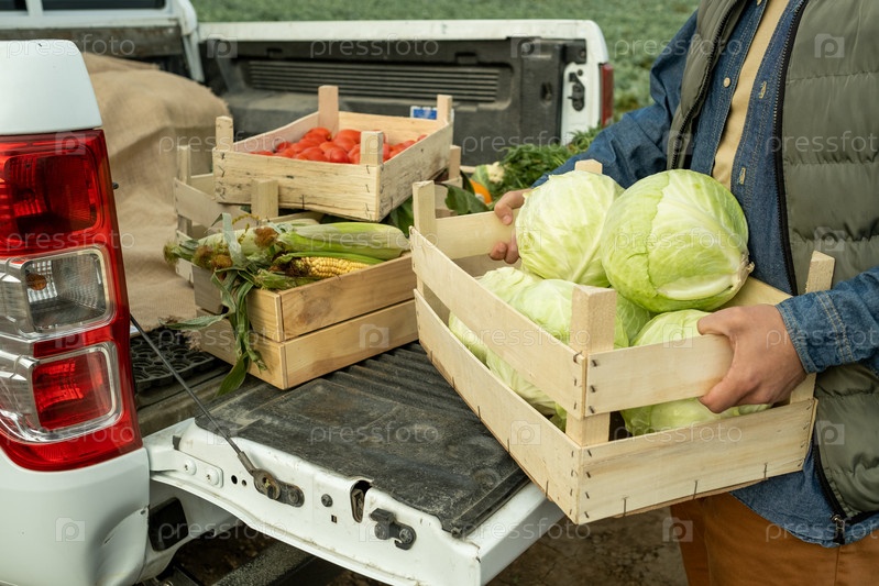 Фермер с коробкой капусты