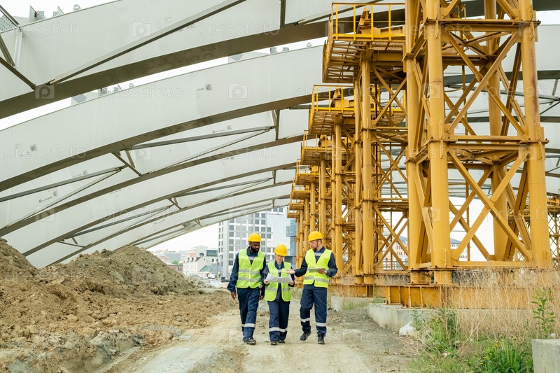 Инженеры контролируют здание строительства
