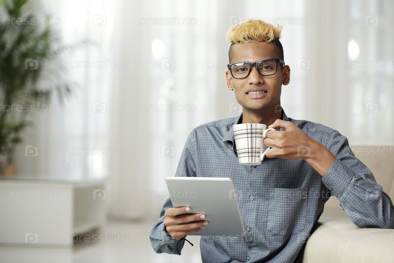 Интеллигентный молодой человек читает электронную книгу