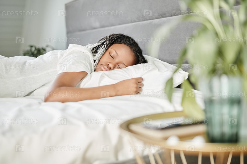 Молодая женщина спит утром