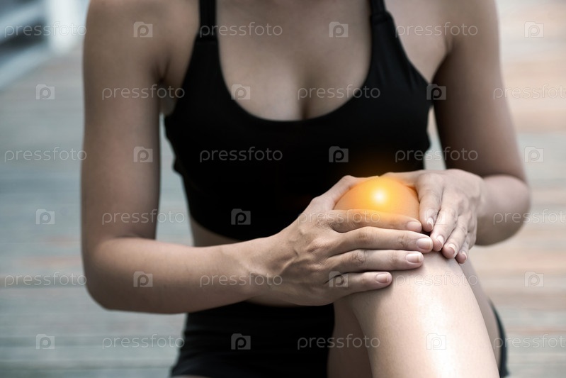 Молодая женщина касается болезненного колена