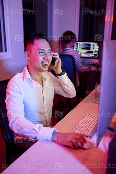 Инженер-программист разговаривает по телефону