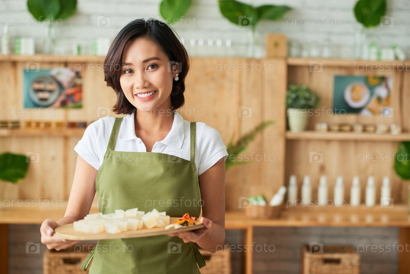 Женщина с ингредиентами органического мыла