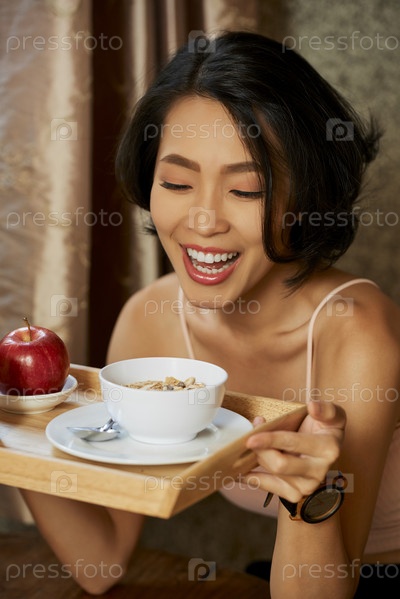 Женщина, наслаждающаяся вкусным завтраком