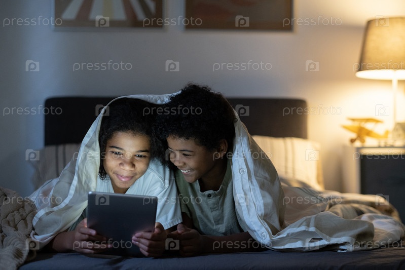 Братья и сестры просматривают Интернет ночью