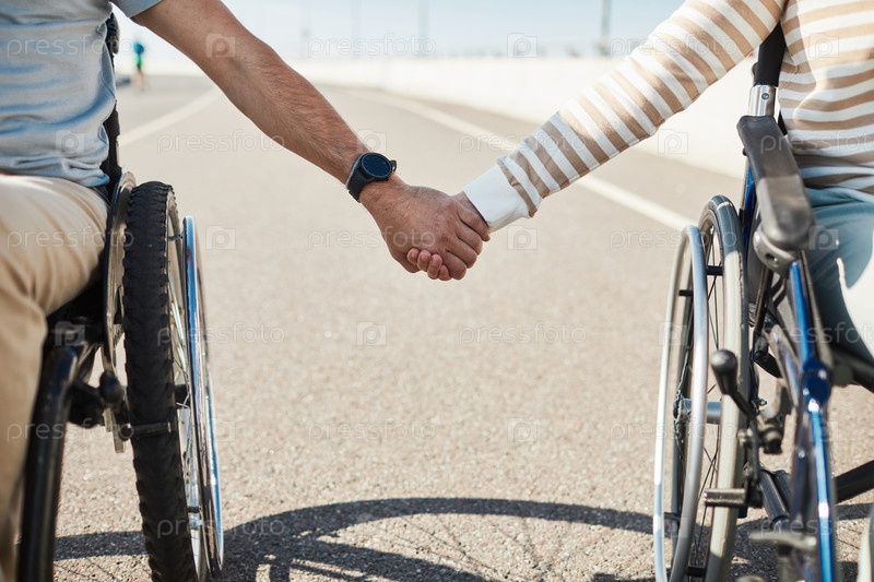 Пара с инвалидностью держатся за руки