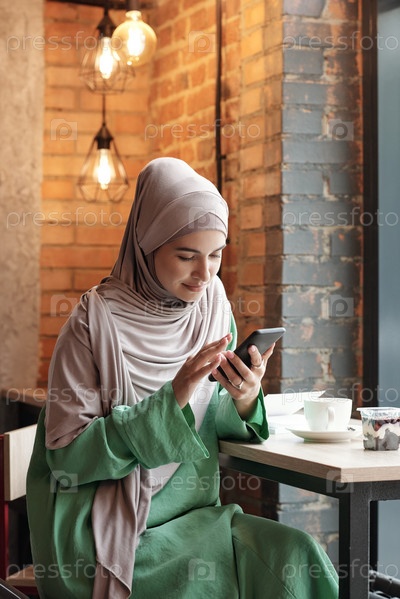 Мусульманская женщина подключается к WIFI