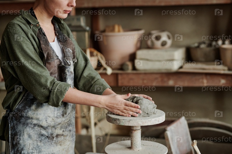 Женщина, работающая с глиной в мастерской
