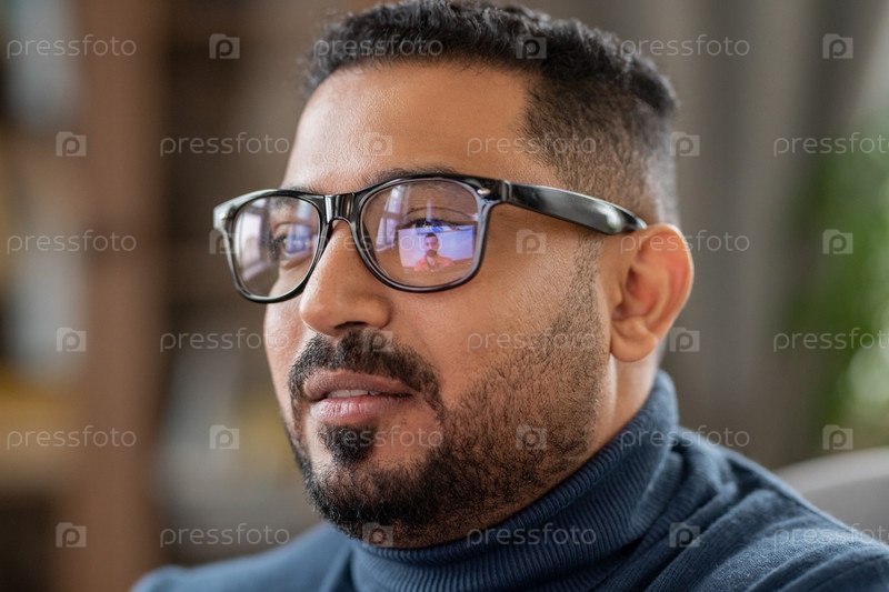 Голова зрелого мужчины в очках, сидящего перед ноутбуком