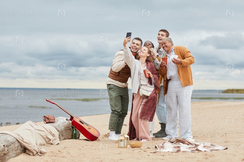 Сельфи на пляжной вечеринке осенью