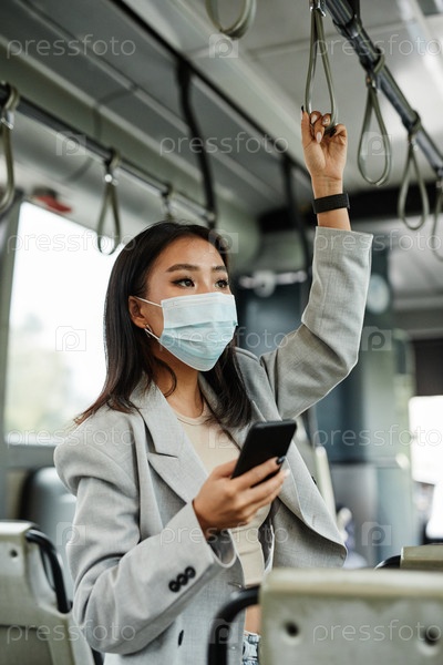 Женщина, носящая маску в общественном автобусе Азиатка