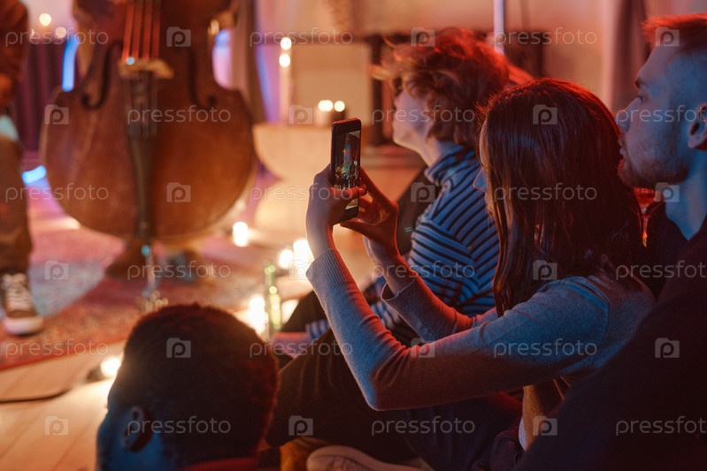 Женщина фотографирует выступление по телефону