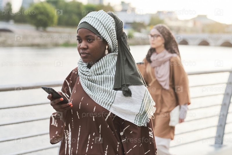 Женщина с телефоном ходит по городу