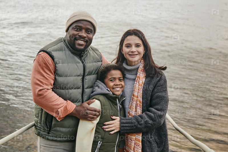 Мультиэтническая семья стоит на улице