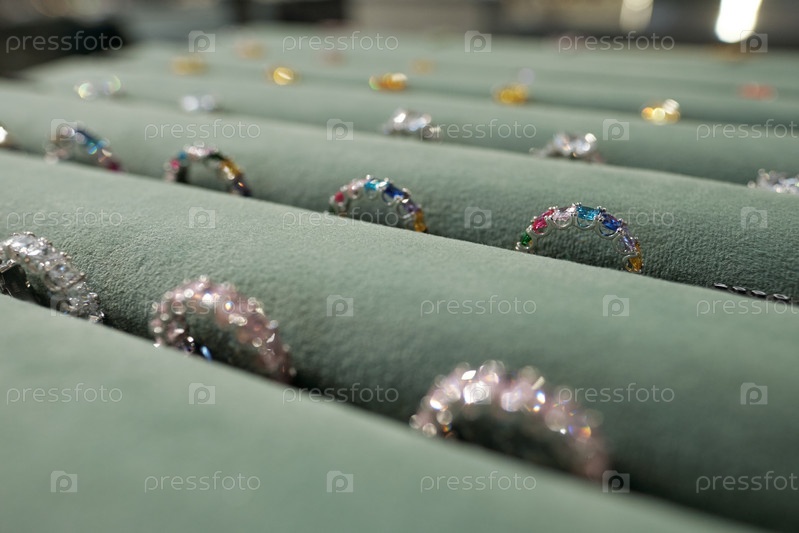 Несколько рядов красивых колец с драгоценными камнями