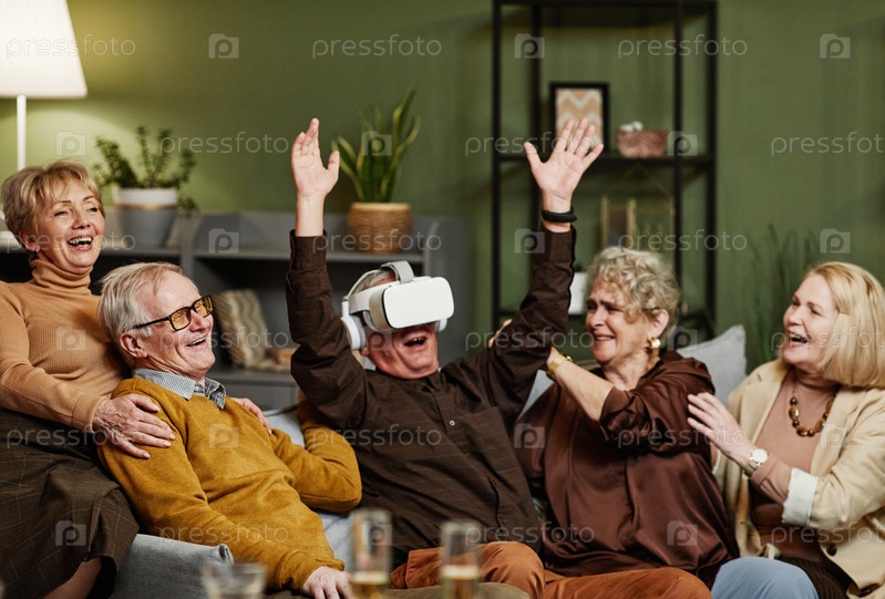 Пожилой мужчина, использующий гарнитуру VR