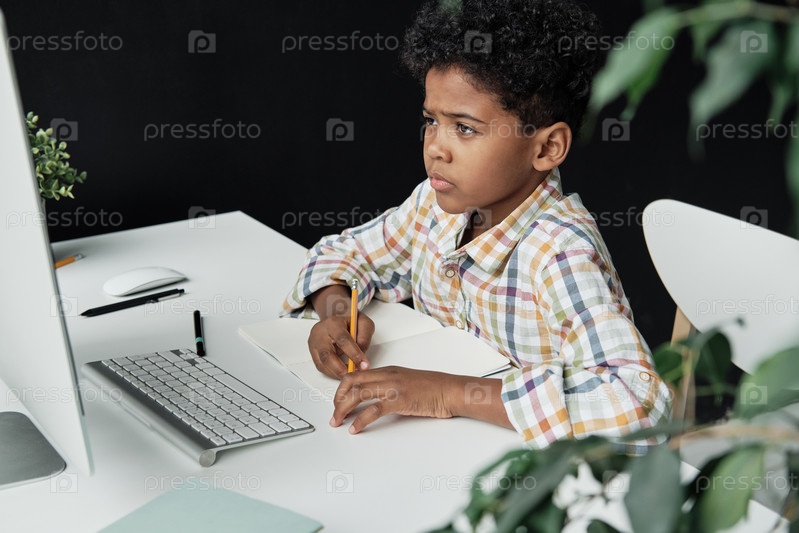 Мальчик учится на компьютере