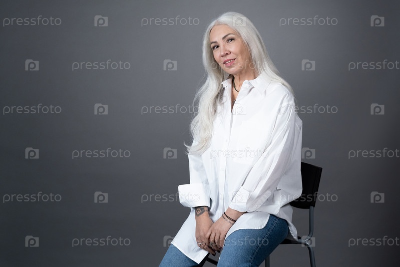 Стильная зрелая женщина с длинными волосами