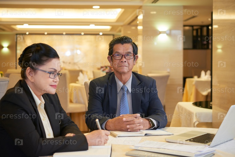 Пожилой предприниматель встречается с коллегой