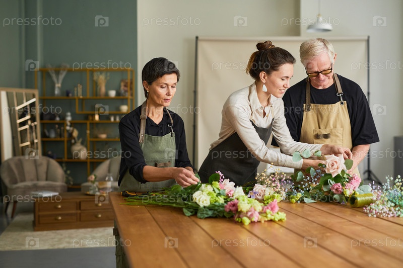 Три цветочника, создающие букеты