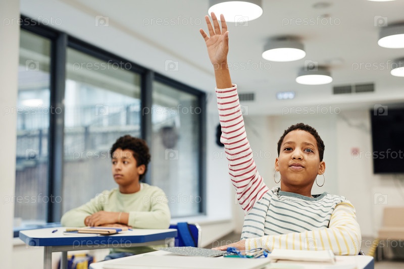 Девочка, поднимающая руку в классе