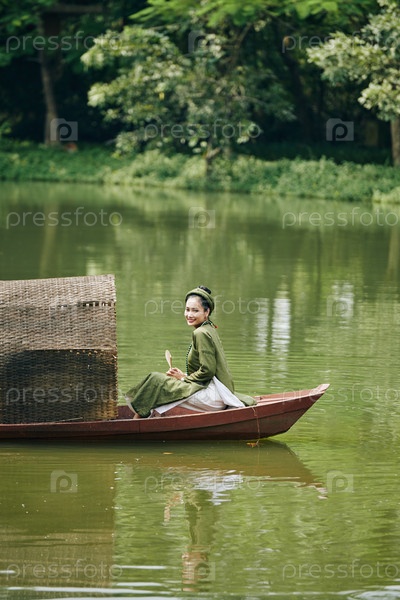Улыбающаяся женщина в лодке