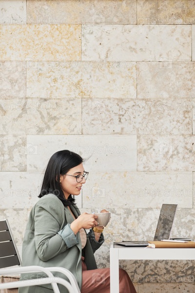 Деловая женщина в Outdoor Cafe Side View