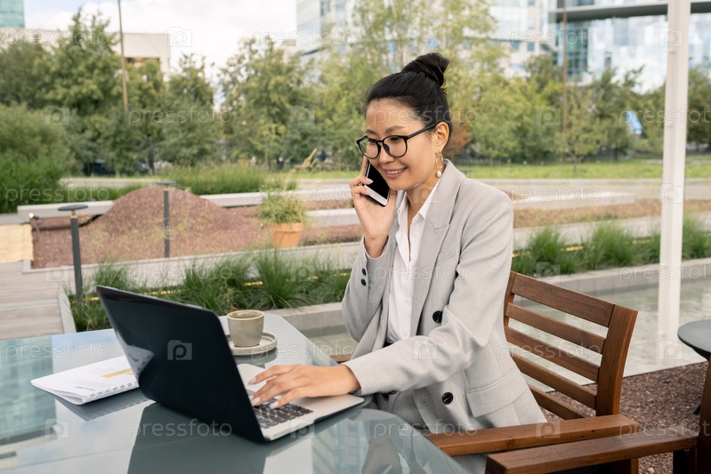 Молодая успешная бизнесвумен использует мобильные гаджеты