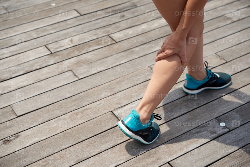 Женщина хватает болезненные ноги на открытом воздухе