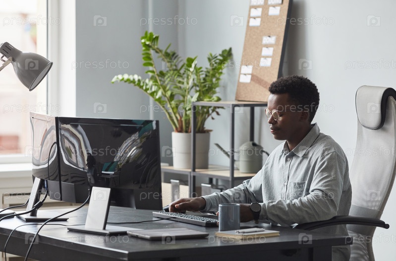 Молодой афроамериканец, работающий за рабочим столом