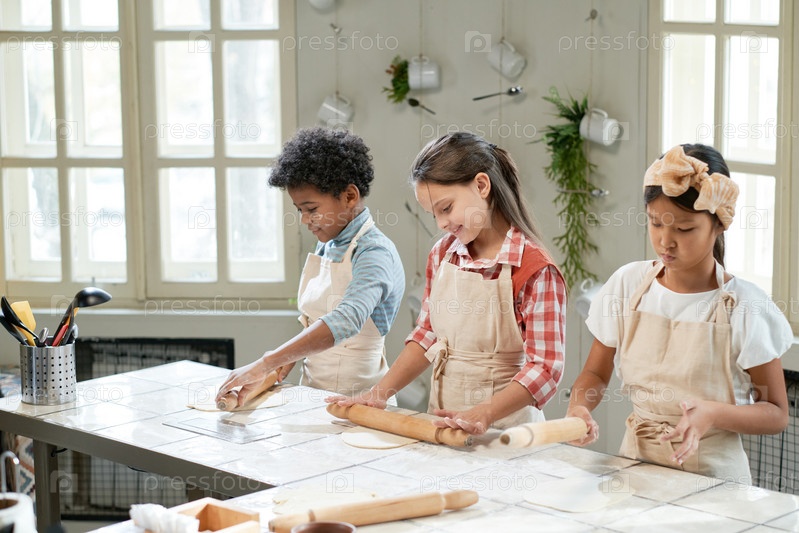 Дети учатся качать тесто за столом