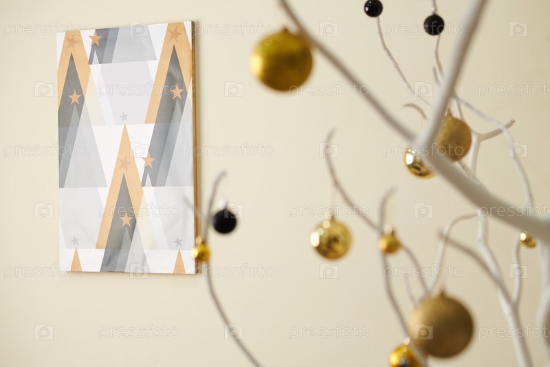 Картина в комнате, украшенная на Рождество