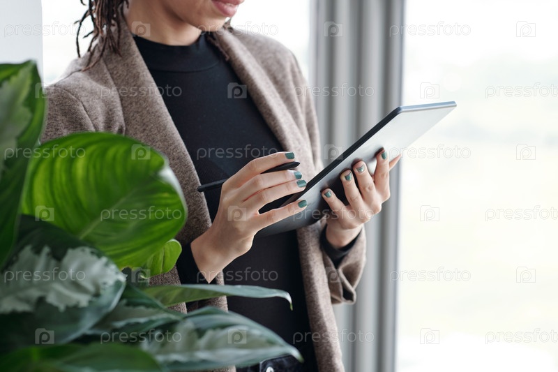Деловая женщина, подписывающая документ онлайн