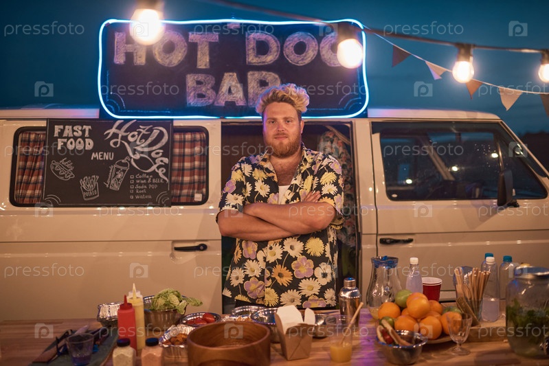 Бармен, работающий в открытом баре