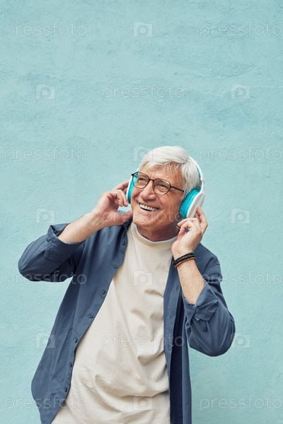 Старший мужчина наслаждается музыкой