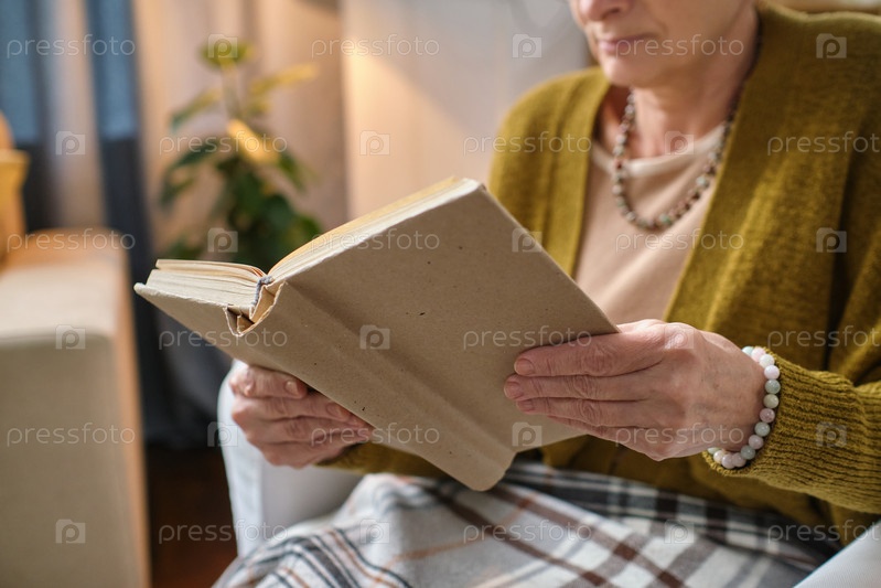 Пожилая женщина читает книгу