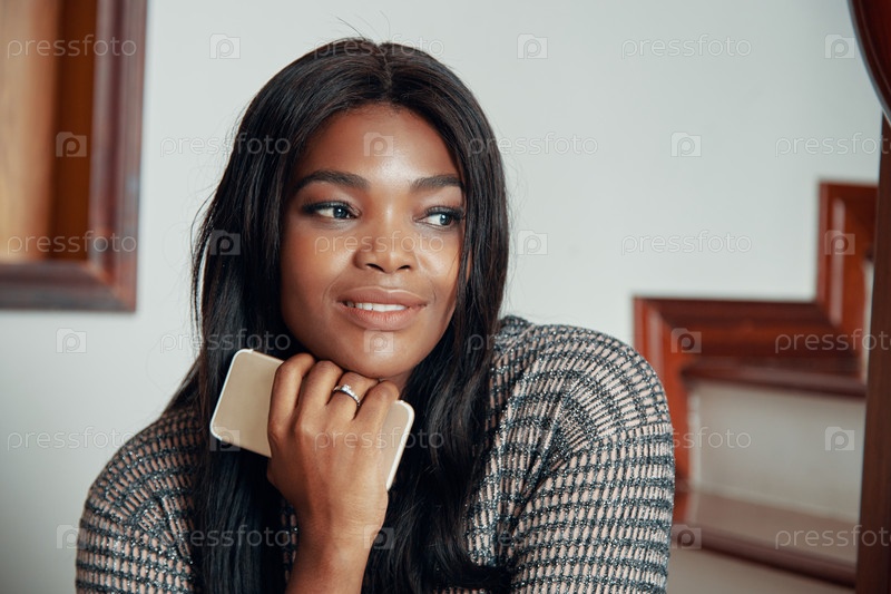 Вдумчивая улыбающаяся молодая женщина