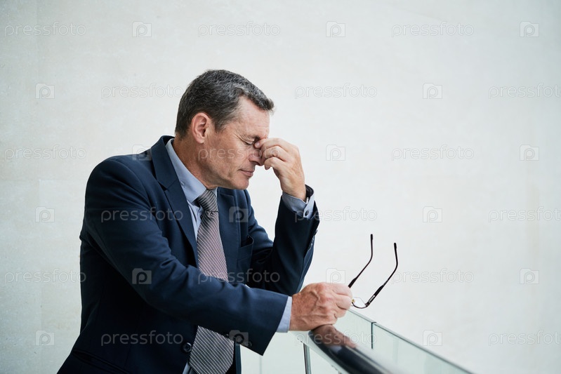 Перегруженный работой зрелый мужчина чувствует боль