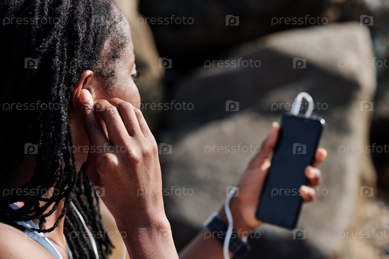 Женщина, надевающая наушники