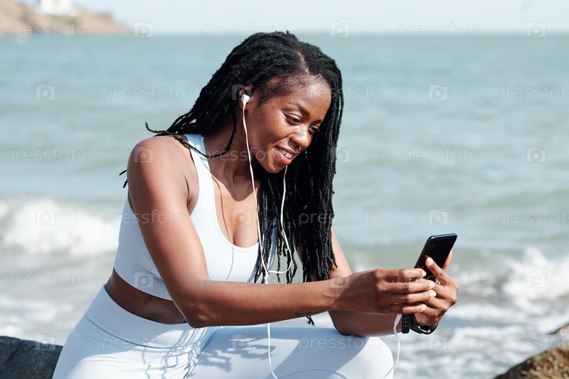Женщина-джогер делает видеозвонок