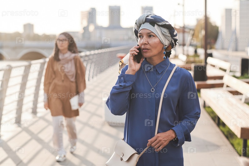 Элегантная женщина, разговаривающая по телефону на улице